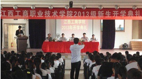 9月9日上午,江西工商職業(yè)技術(shù)學(xué)院2013年新生開學(xué)典禮在行政樓報告廳隆重舉行。教育督導(dǎo)專員兼學(xué)院黨委書記劉富林,學(xué)院院長羅先城,副院長曠強軍、胡國輝、黃竹生等學(xué)院領(lǐng)導(dǎo)及全體教職工出席典禮。